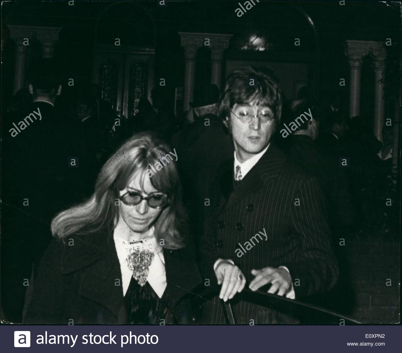 Oct. 10, 1967 - Memorial Service to Brian Epstein: The Beatles and many other show business people paid a final tribute last night to starmaker extra-ordinary Brian Epstein. More than 200 were at the memorial service in the New London Synagogue. Photo shows Beatle John Lennon and his wife, Cynthia, pictured when they attended last night's memorial service.