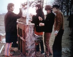 To complete the "Penny Lane" clip, the Beatles returned to Knole Park during the late morning and filmed two final sequences; one in which they rode their white horses out through an archway in a ruined wall, and around the wall to their right; the other in which, despite the bitterly cold weather, they sat at a dinner table by the furthest of two nearby ponds and were served with their instruments by two bewigged men (one of whom was Mal Evans).