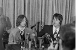 John Lennon (left) and Paul McCartney announce The Beatles' Apple Corps. company at a press conference in New York in 1968.