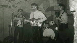 The photos show Sir Paul McCartney and John Lennon singing, with George Harrison on guitar and a partly-obscured original drummer Pete Best.