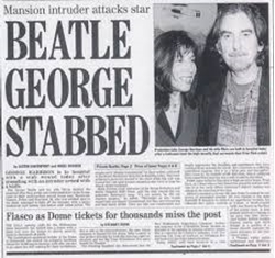 It's a headline that could have been from December 8, 1980, but it was also sadly true of this day, December 30, 1999, when George Harrison was stabbed in his home.
